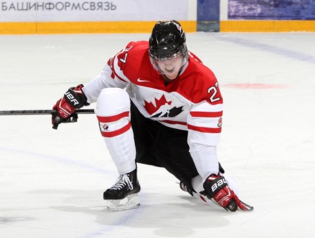 First Period: The game opened as everyone expected, with both teams playing fast and aggressive, trying to get the upper hand early. There weren’t many whistles in the opening 10 minutes, but there were lots of scoring chances. Both teams were waiting for the other to break and with eight minutes to go, Russia did. Valeri Nichushkin, a 2013 top-prospect, hit defenceman Tyler Wotherspoon hard from behind, resulting in a five-minute major and a game misconduct. Canada finally had their chance and they capitalized on it twice.