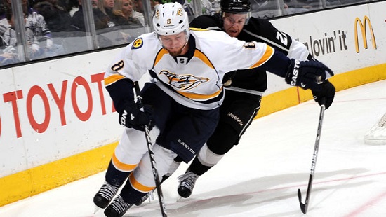 Enter Kevin Klein (not the Oscar & Tony Award-winning actor). Klein was selected by the Nashville Predators in the 2nd round of the 2003 draft. After a few seasons with the Predators AHL-affiliate in Milwaukee, the 29-year-old rearguard got his first significant NHL action in the 2008-09 season. No one will mistake him for an offensive wizard, considering his best point production season came in 2011-12 (four goals and 17 assists in 66 games). But what he can provide is twenty minutes a night of reliable defense, and six years of experience on a team that doesn’t light the lamp often (sound familiar?).