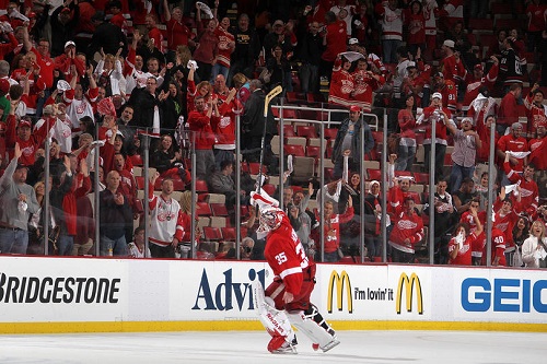 Jimmy Howard was fantastic in Thursday night's Game 4, stopping all 28 shots he faced and blanking the Blackhawks. Photo by Gregory Shamus/Getty Images