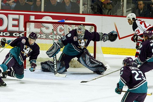 Yesterday, I mentioned that while we deal with this lockout, it might help to relive some of our fondest hockey memories. Yesterday, I shared the memory of the first hockey game I saw – the night that the Wings and Avs brawled and the night that the Red Wings transformed from overrated to champions. Today is another memory – this one not as fond. See, I was born and raised in Detroit so I am a huge Wings fan. However, when I witnessed this upcoming memory, I could not help but be amazed. This is the memory of the 2003 Anaheim Mighty Ducks and their remarkable goaltender J.S. Giguere.