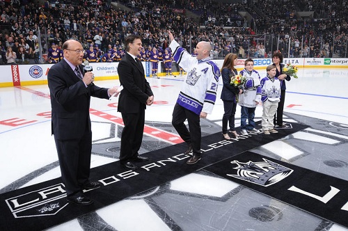 LOS ANGELES, CA – FEBRUARY 23: Former King Ian Laperriere is honored prior to the game between the Los Angeles Kings and the Colorado Avalanche at Staples Center on February 23, 2013 in Los Angeles, California.