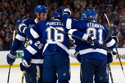 RW Teddy Purcell (1) drove home a one-timer assisted by Stamkos and RW Martin St. Louis to tie the game at 14:34. The assist was Stamkos’ seventh for the season.