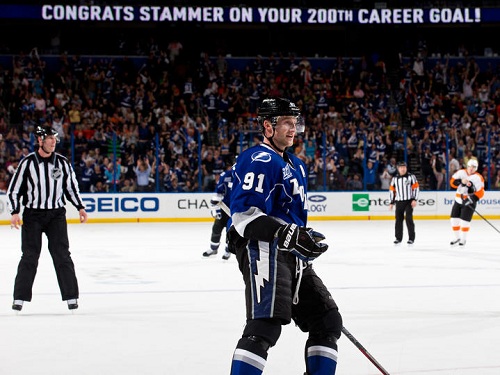 It took almost a week, but Steven Stamkos finally scored his 200th career goal, netting an empty-netter to put a cap on the Tampa Bay Lightning’s 4-2 victory over the Philadelphia Flyers on Monday night.