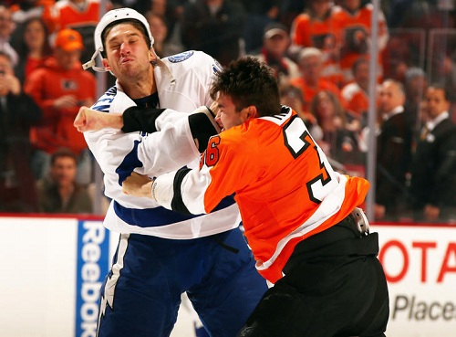 Sestito entered the game with more fights in his career than shots (25 to 11). Tampa Bay let a fringe-NHL player score twice, supplying both of the Flyers’ goals in the game.