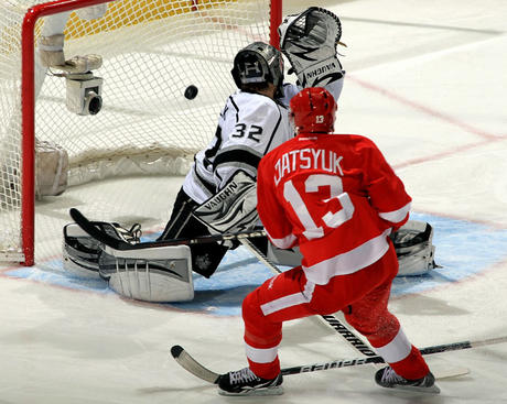The Red Wings were quick [no pun intended] to take the early lead on a goal from Pavel Datsyuk.  Captain Henrik Zetterberg and Niklas Kronwall had the assists.  The goal came after a Justin Williams interference penalty and on a great feed from Zetterberg.  Datsyuk skated right down the middle and split the Kings’ defense.  The goal came at 5:44, and was the Wings’ third straight goal that came on the powerplay (continuing from yesterday).