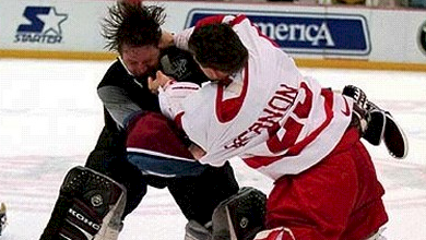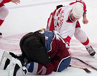 Looking back on this game now, I can’t imagine this game ending any other way than the way it did. I wouldn’t have it any other way. The fans of Detroit wouldn’t have it any other way. In fact, the game may not have had the same significance if it did not end the way it did. Just 39 seconds in, the Wings executed a perfect 3 on 2 breakout. It was Larionov…to Shanahan…to McCarty….for the win. 6-5, Red Wings win. The three forwards who were a part of the most important fight in Red Wings history teamed up for the winning goal. The man who stepped up and destroyed Claude Lemieux was the man who finally got Detroit a win against the Avs after 7 consecutive losses.