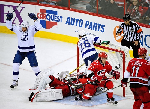 In the first period, Tampa Bay spent a lot of time around Cam Ward’s net. After overcoming several early icing calls, the Bolts put home two unanswered goals at 05:18 and 11:36.