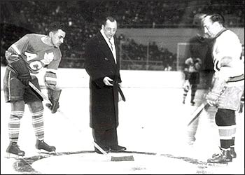 Ace Bailey drops the puck at his benefit all-star game. Photo: Hockey Hall of Fame