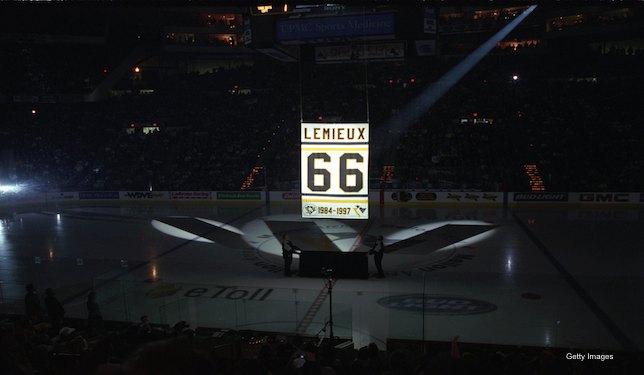1997: Mario Lemieux announces (for the first time) that he would retire. With only five games left in the 1996-97 season, he announced his retirement would commence following the season. That season Lemieux led the NHL in scoring with 122 points.