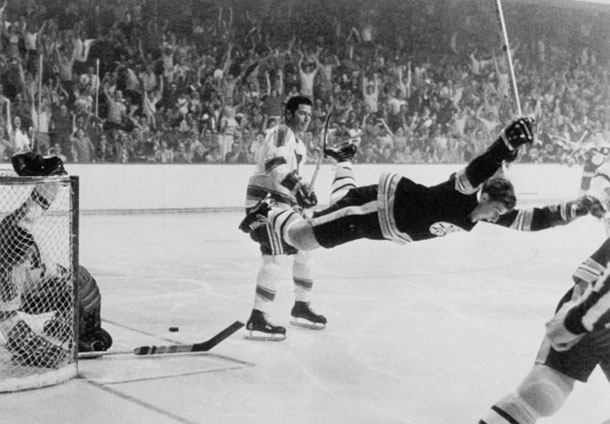 Bobby Orr scored the Cup winning goal in the Bruins four game sweep of the Blues in 1970.