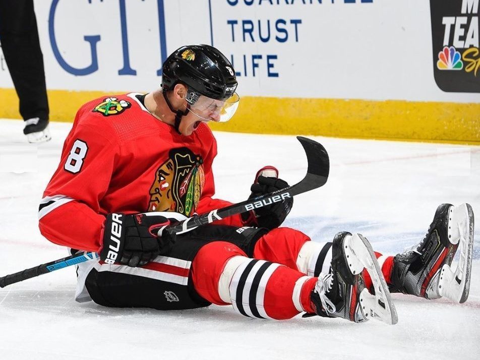 -Wrong. The Hawks scored the next four goals in the first period included three goals in a span of 3:26. Dominik Kubalik had assists on each of the last three goals of the period.